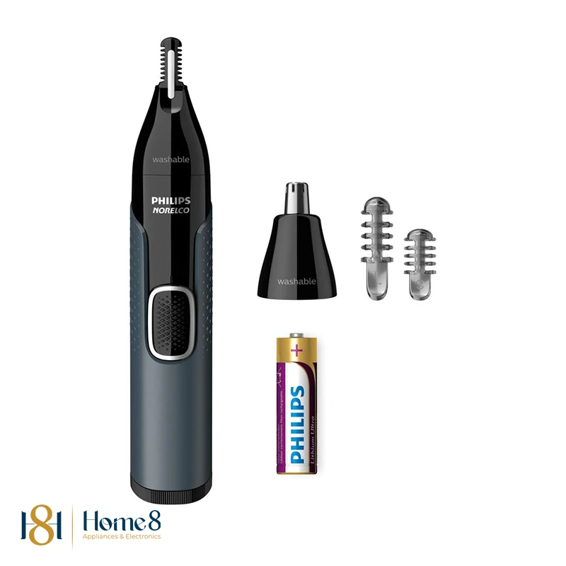 موزن بینی فیلیپس مدل NT3600، راه حلی ایدهآل برای اصلاح دقیق و بیدردسر موهای زائد است که آراستگی و اعتماد به نفس را برای شما به ارمغان میآورد. این دستگاه با سیستم محافظتی پیشرفته خود، تیغهها را از پوست شما جدا نگه میدارد و تضمین میکند که اصلاحی کاملاً راحت، بدون کشیدگی و بریدگی را تجربه کنید. تیغههای دوطرفه استیل این موزن، موهای زائد بینی، گوش و حتی ابروها را با دقت و سرعت بالا از بین میبرند و پوستی صاف و بینقص را به شما هدیه میدهند. طراحی ارگونومیک و دکمه روشن/خاموش آسان، استفاده از این موزن را فوقالعاده راحت کرده است. یکی از مزایای برجسته این محصول، قابلیت شستشوی کامل آن زیر آب است که تمیز کردن و نگهداری آن را به کاری بسیار ساده تبدیل میکند. با خرید عمده موزن بینی فیلیپس مدل NT3600، میتوانید از کیفیت و دوام این محصول اطمینان داشته باشید، چرا که فیلیپس به تولید محصولات باکیفیت و پایدار شهرت دارد. این دستگاه با باتری قلمی AA کار میکند و همراه با دو شانه ابرو در اندازههای 3 و 5 میلیمتر عرضه میشود که امکان اصلاح یکدست و مرتب ابروها را فراهم میسازد. اگر به دنبال سفارش عمده موزن بینی فیلیپس مدل nt3600 هستید، ما به شما اطمینان میدهیم که این محصول با بستهبندی دوستدار محیط زیست خود که تا 97% از مواد جایگزین پلاستیک استفاده میکند، انتخابی مسئولانه نیز هست. طراحی سبک، جمعوجور و مجهز به کیف نگهداری، حمل و نقل این موزن را آسان میکند و آن را به همراهی ایدهآل برای سفر تبدیل کرده است. برای فروش عمده موزن بینی philips مدل nt3600، این محصول یک گزینه جذاب و قابل اعتماد برای مشتریان شما خواهد بود.HOME-8 وارد کننده ی محصولات آرایشی و بهداشتی برقی از دوبی.